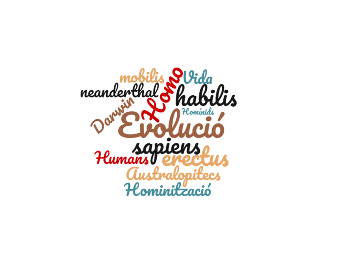 Elabora un núvol de paraules (word clouds) per cadascuna de les espècies d'homínids i "penja"-ho al twitt corresponent !